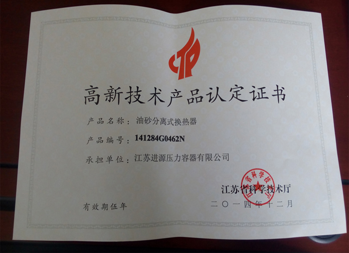 高新技術產品認定證書